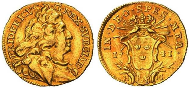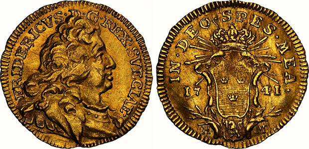 Denna var bedömd till kvalitet 0 på Hirsch auktion 1966, vilket kanske var en anledning till att myntet blev återropat. (Foto Hagander 4)