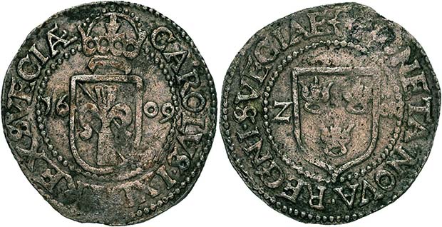 Antikören hade ”bläckskrift” i sin beskrivning och det krävs lite mer än ”lätt” rengöring för att få bort det. Klicka på bilden för att se hur myntet såg ut tidigare. (MISABs foto)
