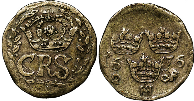 Göhle visar bara frånsidan av detta mynt, men det lär nog räcka för att känna igen det när det kommer ut till försäljning nästa gång. (Foto ur Göhles bok)