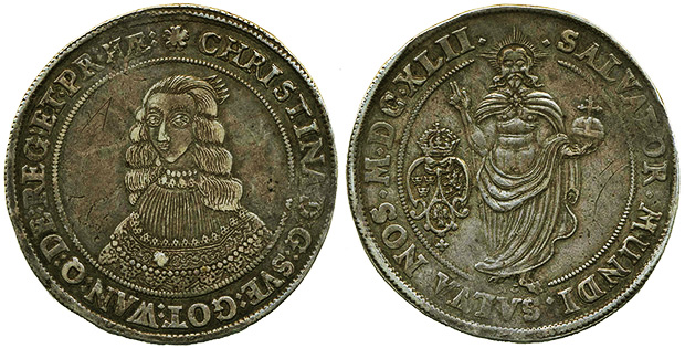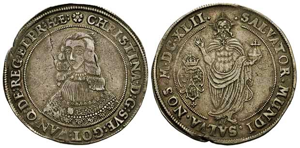 Det är nästan så att man inte vet om man ska räkna den här fulingen; det myntmästarmärke som man måste utgå ifrån att det en gång fanns mellan fötterna är ju förstört. Utropet på auktionen var försiktiga 5 EUR men det klubbade priset blev ändå det i sammanhanget inte föraktliga 220 EUR. (Foto Numisbalt 8)